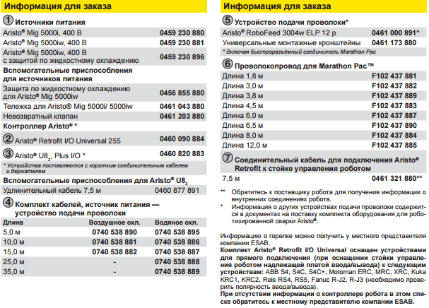 Модуль контроля Aristo Mig (с технологией ESAB Canbus) сочетается в работе с различными моделями инверторных источников энергии Aristo Mig, с высокоскоростным, высокоточным, устанавливающимся сверху манипуляторов автоматическим оборудованием подачи проволоки, с различными автоматическими интерфейсами и самым мощным блоком управления в промышленности - Aristo Pendant U82 Plus.